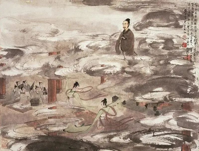 二十世纪五十年代,是新中国成立后的第一个十年阶段,社会的剧烈变革、思想观念的巨大变化促使傅抱石的绘画创作题材、主题内容和艺术技法都在不断发生新的变化。这一时期,他的绘画除历代诗意画、历史人物画以及山水写生绘画外,以毛主席诗意画以及风景名胜、革命胜地、海外风景写生为题材内容的绘画也开始出现。