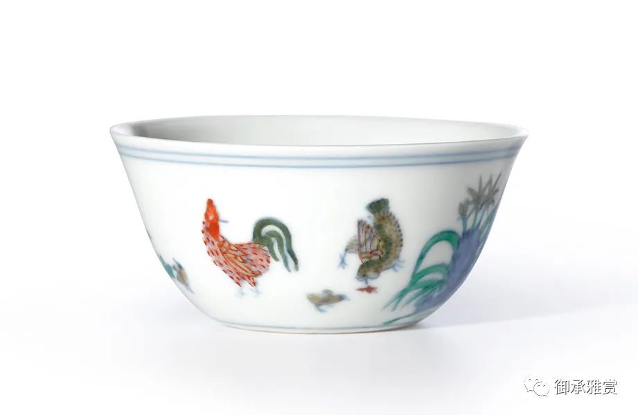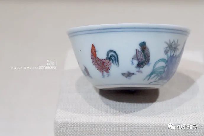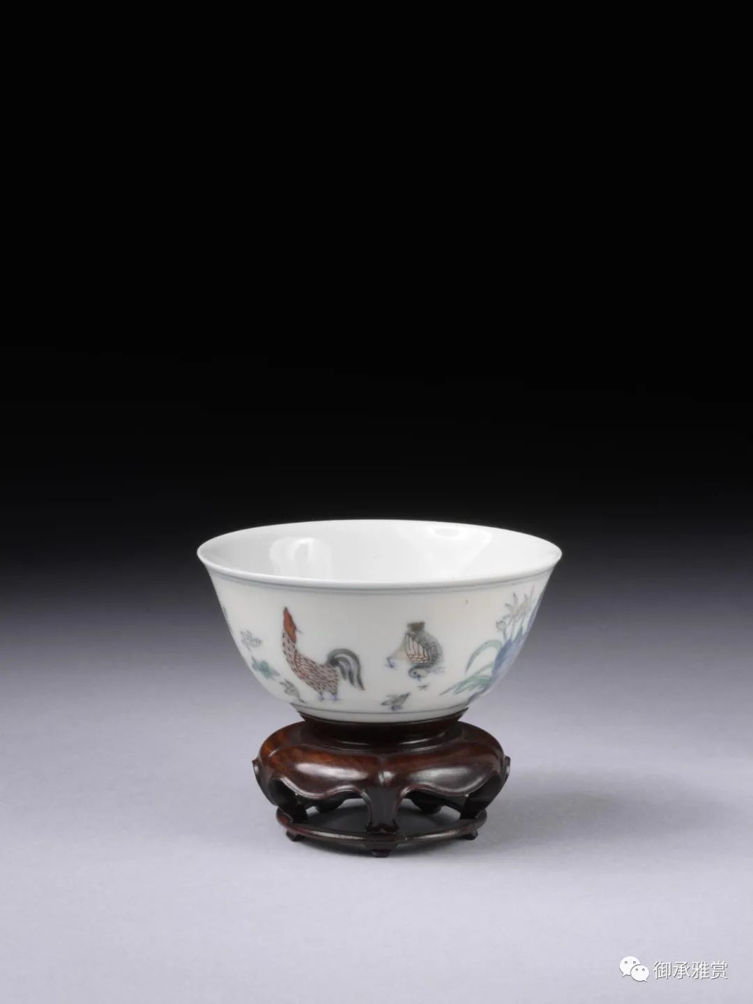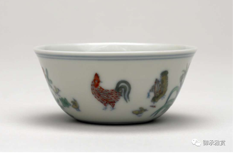 而在文博圈,对于这个图案的熟悉也许来自另一件器物——鸡缸杯。同样是以“鸡”为题材的瓷器,后者的价值可比前者高多了!