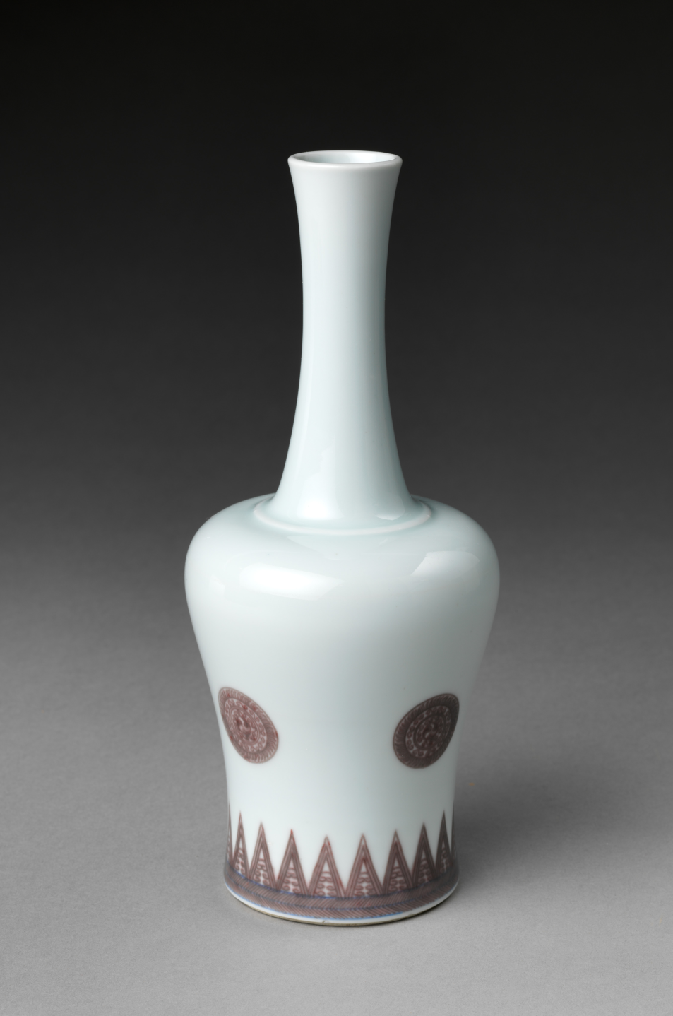 这种小巧优美的器型一经烧造成功便开始流行,与此同时,摇铃尊上还出现了青花、釉里红、釉下三彩、粉彩、斗彩、五彩等多种工艺品种,成为当时官窑瓷器里的珍稀之品。