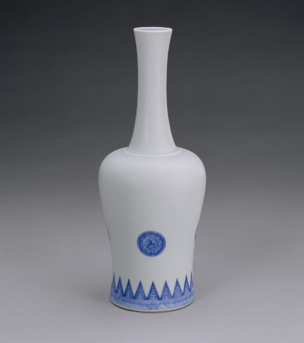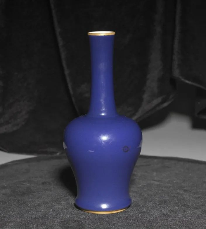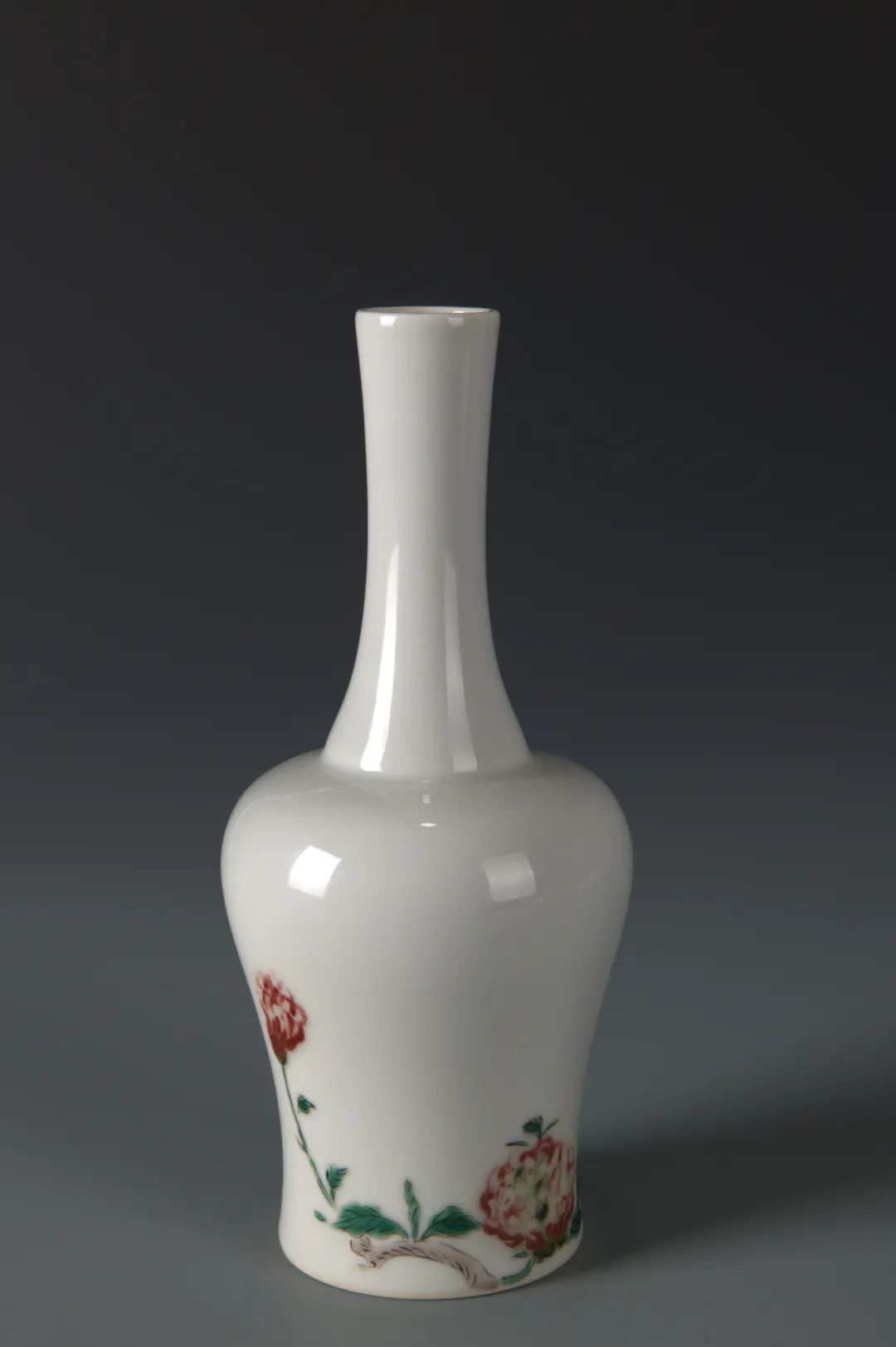 摇铃尊是康熙朝经典名瓷珍品之一,器型特点为小口,细长颈,丰肩,弧形或筒式腹,浅圈足,平底,这种小巧优美的器型一经烧造成功便开始流行,因形似藏传佛教长柄摇铃而得名,用途多为皇室对藏传佛教寺庙及高僧的赏赐。