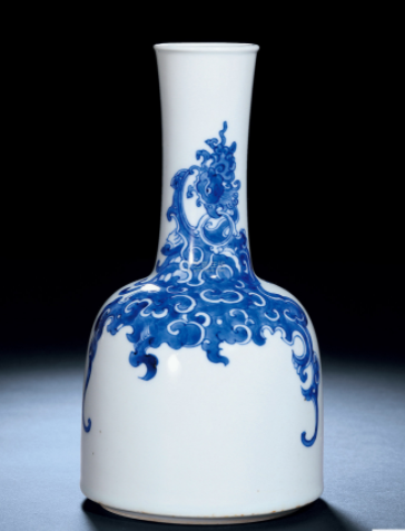 康熙摇铃尊的造型以清丽、雅致为美,无论是青花、釉里红还是其他色釉,由于其口部微撇,颈部细长,肩部丰满,线条力度感强,所以在古代柴窑烧制的情况下,特别容易产生变形,所以摇铃尊烧制成功的几率不高,也由此,摇铃尊成了康熙年间的珍贵官窑品种。