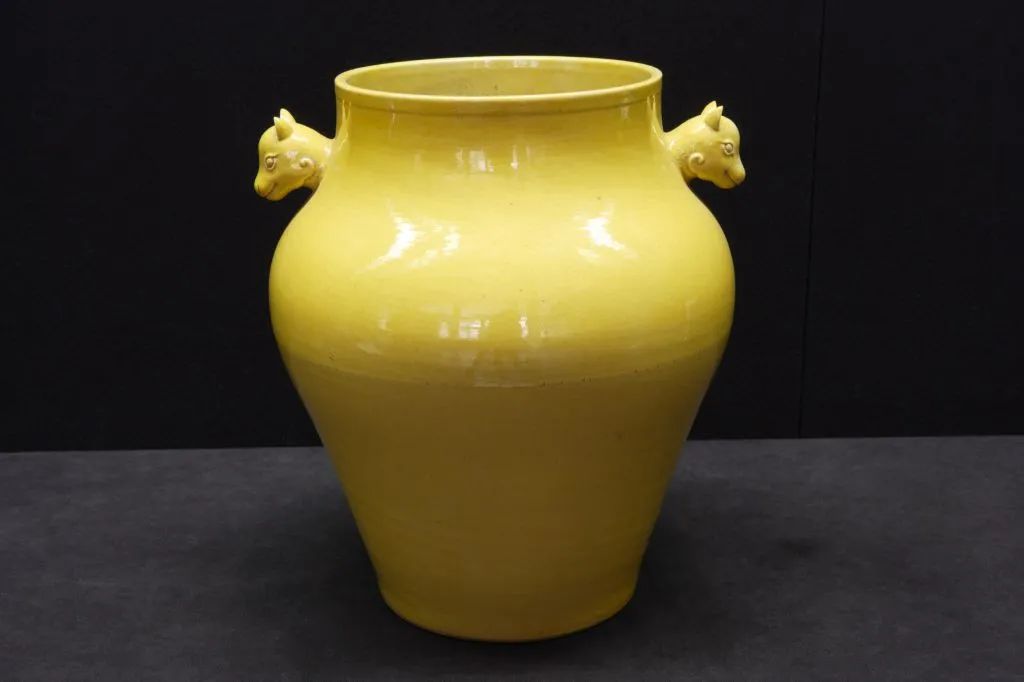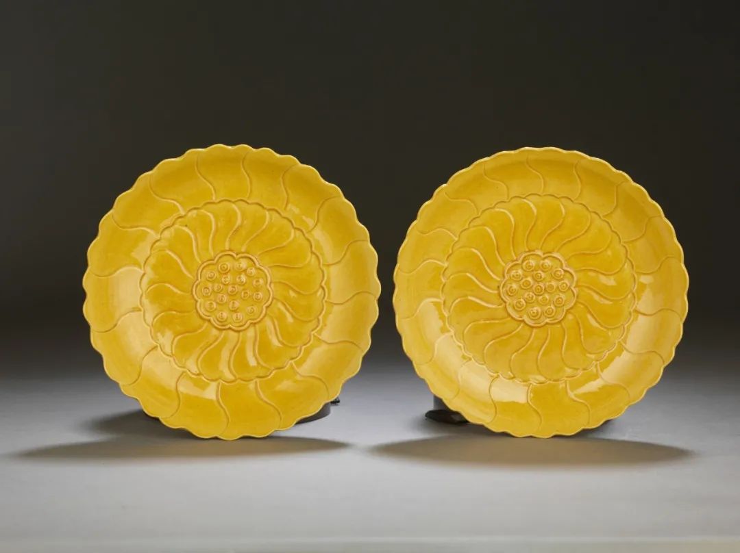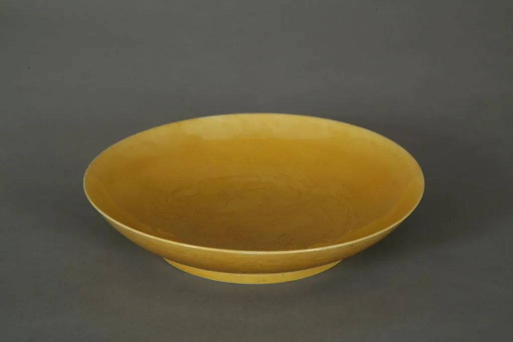 弘治浇黄瓷器是专为宫廷烧造的器种,为明朝六大名贵器种(洪武釉里红、永乐甜白、永宣青花、宣五彩、成斗彩、弘治浇黄)之一。从烧造工艺、烧造器型,还是烧造数量看均为明代黄釉器的楷模。此时黄釉是在白釉的瓷器或素烧涩胎上,用浇釉的方法施釉,被称为“浇黄”。又因其釉色娇嫩、淡雅、光亮如鸡油,又称为“娇黄”“鸡油黄”,成为弘治单色釉中最负盛名的陶瓷品种之一。