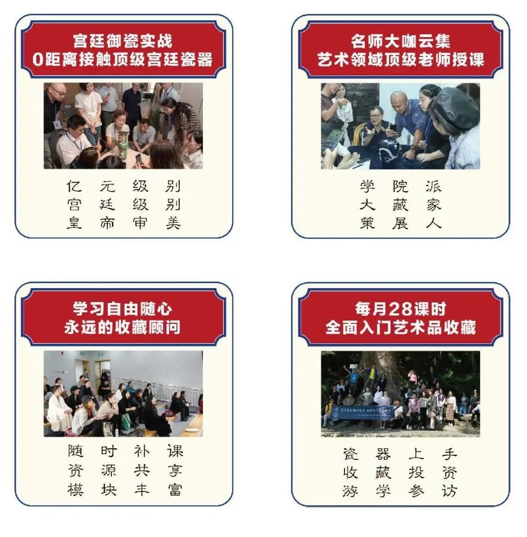 宁波大学古陶瓷艺术学院创立院长、御承堂系列博物馆馆长蔡暄民老师拥有50年收藏经历,藏品曾被G20、金砖五国、进博会等国际会议借展。御承堂艺术品班将依托御承堂丰富的高级别藏品,为学员带来0距离的艺术鉴赏学习体验。