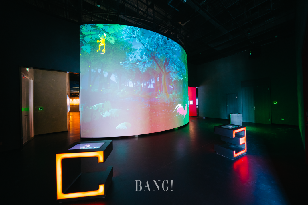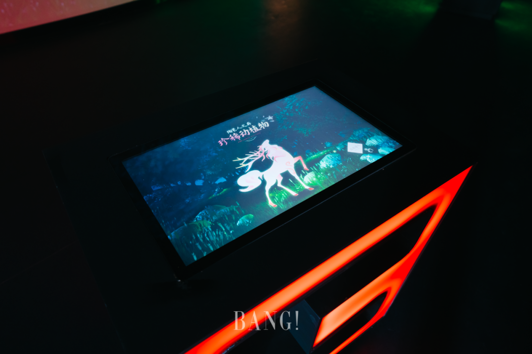 黑暗中一面巨型的大屏上,一片静谧的森林出现在眼前,三个触摸屏上栩栩如生的精美动植物图案,选择一个上完色,在屏幕上投影出活灵活现的动画效果,营造出美轮美奂的视觉享受!