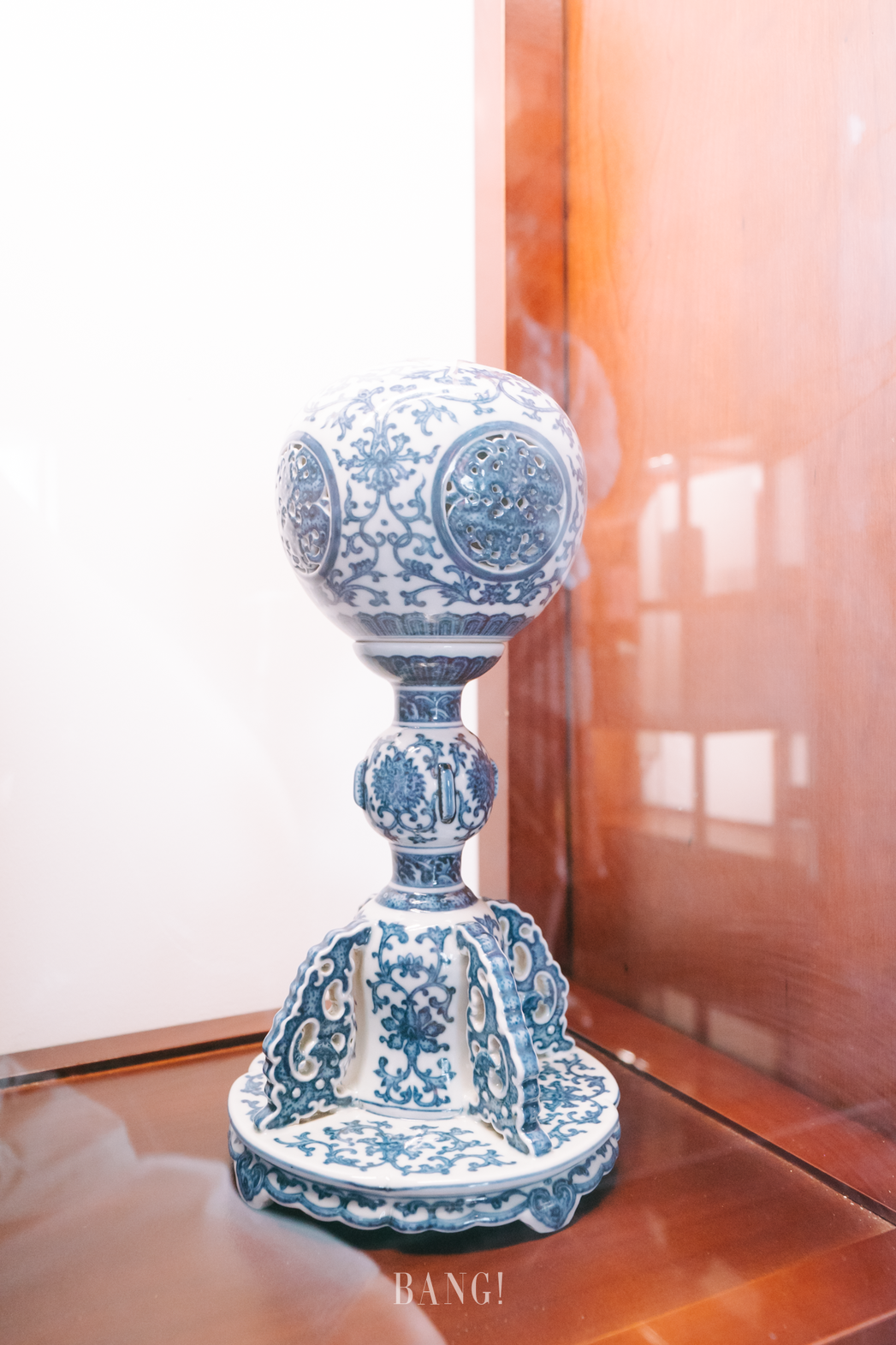 通过书桌上的触摸屏,可以放大每件展品观察细节,粉彩砚滴、石榴尊、青花帽台...品味稀世珍品的不凡魅力!