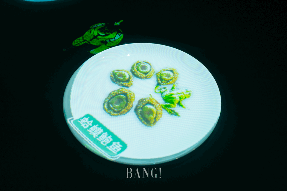 桌上摆满了皇家御膳的满汉全席,多媒体装置上准备了有趣的互动投影游戏,点击屏幕选择想要的菜品,就能直接投影在餐盘上,带来惊艳的视觉效果!