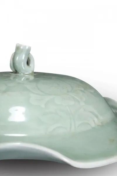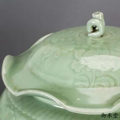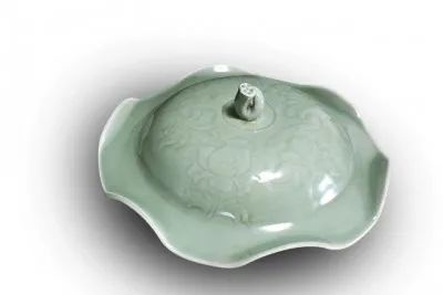 元代的荷叶形盖罐,胎体厚重,釉色青中泛黄,呈豆青色或青黄色,滋润如玉。荷叶盖罐这样的创新器型也开始多了起来,仅在中国元代沉船——新安沉船上出土的荷叶形盖罐就大大小小多件。像划、刻、印、贴、镂、堆装饰也多了起来,并且主要以划花围住,线条奔放豪迈。可惜到了明代,荷叶形盖罐走向了衰落期。