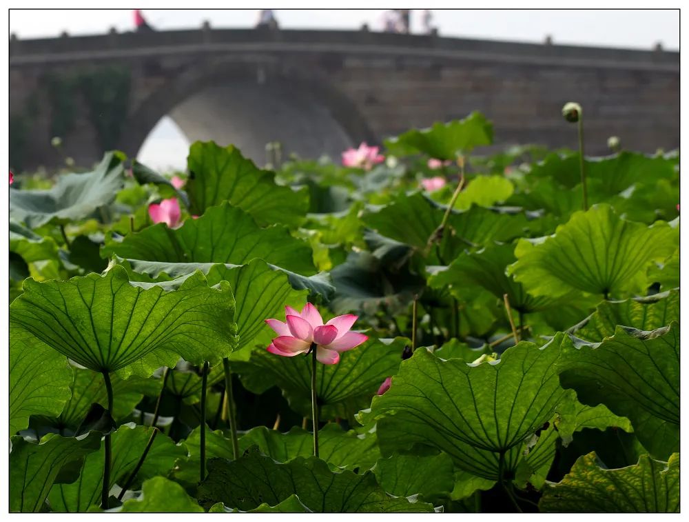 荷花以其清雅、高贵的风姿,出淤泥而不染的气质,为世人所推崇,被誉为“君子之花”。绿色荷叶默默无闻地映衬着荷花,使得荷花更加夺目。在古诗词中,荷花、荷叶是文人墨客时常描绘与抒写的重要题材。