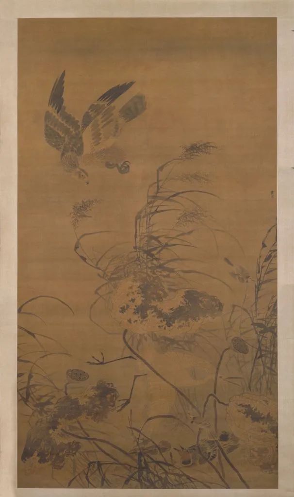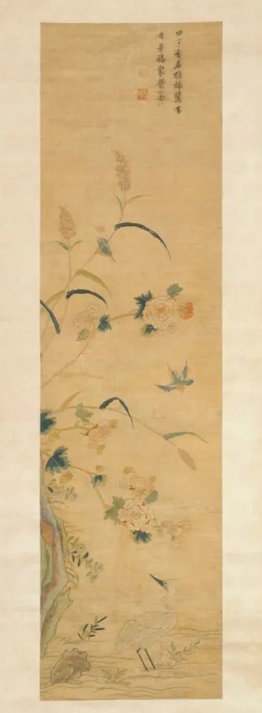 清乾隆 缂丝乾隆御制诗鹭立芦汀图轴