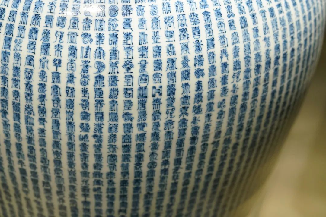 因此,先后化七年时间完成是可以想象的。尤其是青花钴料的渗透性,一笔写错,整罐报废。即使现在让人用易于操控的钢笔钞录,也难保一笔不错一字不误(前几年曾面世的仿品其中有塗改几字也是可以理解的)。
