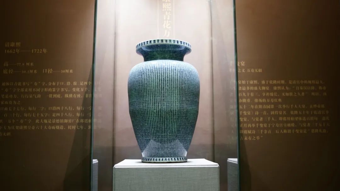 康熙五十一年,正是康熙五十九岁生日,古代有做九不做十的习惯,所以,该罐正是郎廷极献给康熙60大寿的贡品。从清宫档案可以清晰查到,贡品往往有成双成对的规矩,应“好事成双”之佳意。从清宫秘档中获悉,青花万寿尊应该不止一对,从郎廷极的处事用心上,也可看出,如烧制一件,万一在运输过程产生不测,这是性命难保的大事,故至少烧制两只以上,应和好事成双。